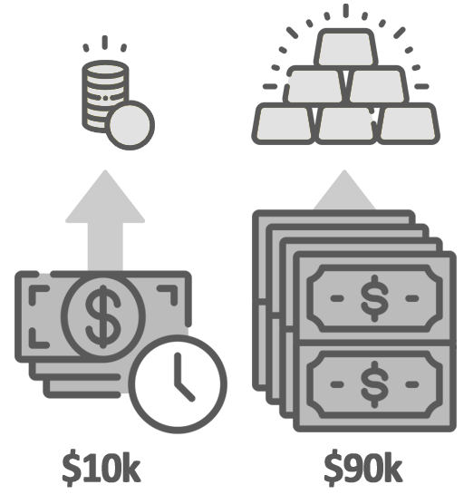 Your $90,000 would stay in super secure vaulting while your crisis $10k would see you through most more limited term possibilities.